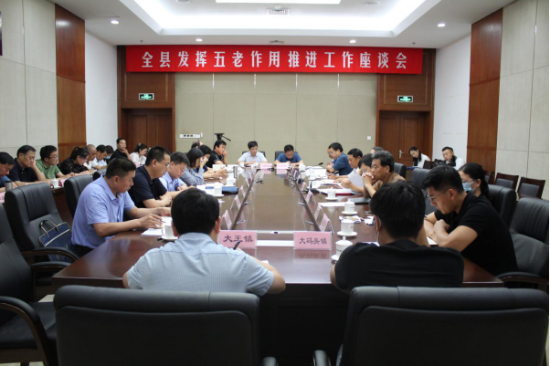 8月4日,东营市广饶县召开全县发挥五老作用推进工作座谈会。县关工委主任钟景训,县委常委、组织部部长胥高远,县关工委常务副主任韩庆发、刘廷章,县委组织部副部长、县委老干部服务中心主任王洪宪,县直有关单位负责人,各镇街党(工)委副书记、关工委主任,部分社区、村关工委代表及五老志愿者代表共计40余人参加会议。