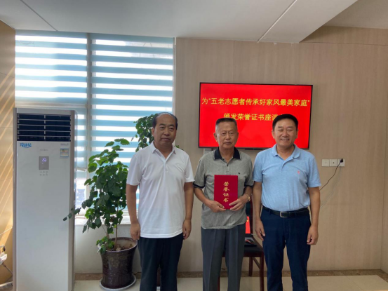 近日,济南市章丘区关工委传来喜讯,原章丘市人大副主任、“五老”志愿者柴本棠同志的家庭被省关工委授予“山东省五老志愿者传承好家风最美家庭”荣誉称号。为表彰先进,激励更多家庭弘扬好家风、争做最美家庭,8月11日上午,章丘区关工委在桃花山社区召开为“五老志愿者传承好家风最美家庭”颁发荣誉证书座谈会。