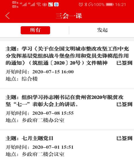 流长苗族乡“筑红云”系统乡党政支部三会一课部分记录截图