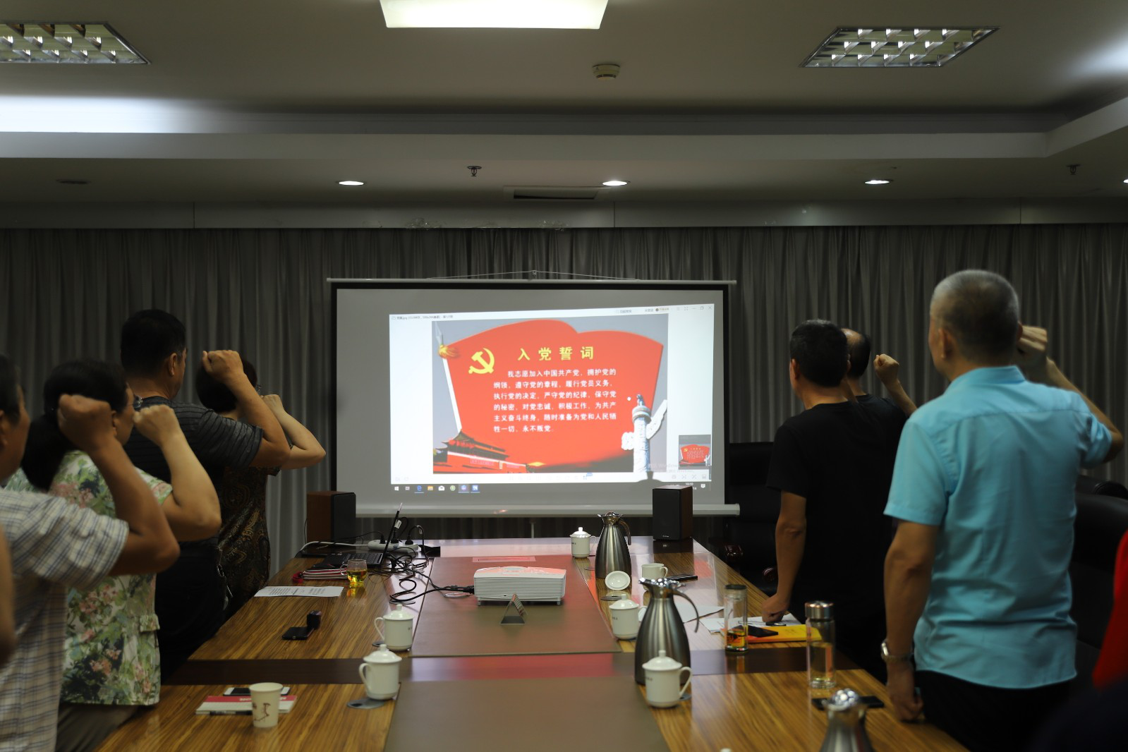 参加活动的离退休老党员,面对党旗,庄严地举起右手,重温了入党誓词。