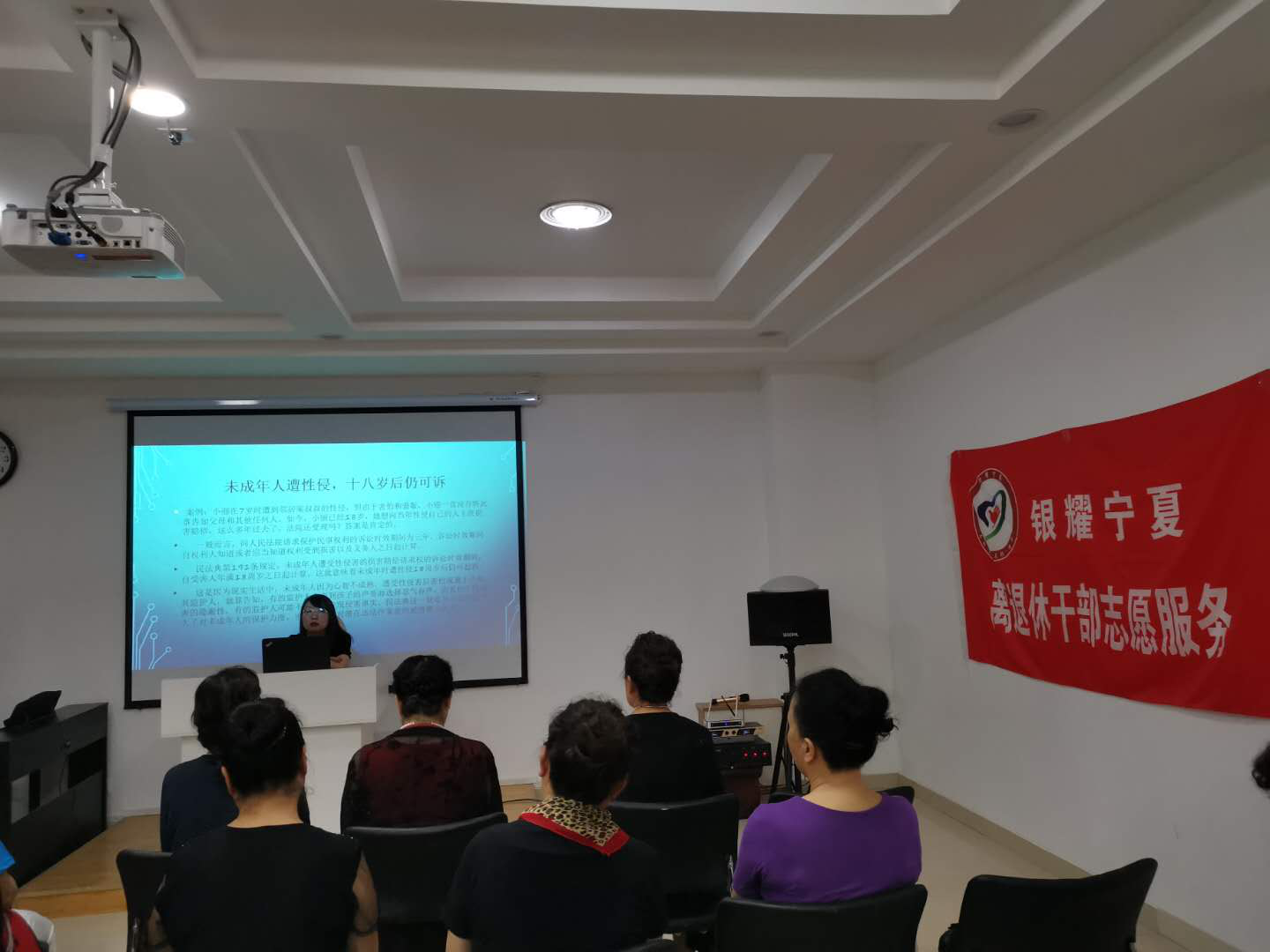 为切实推动《中华人民共和国民法典》学习宣传,近日,宁夏离退休干部志愿者协会组织离退休干部志愿者到银川市金凤区湖畔嘉苑社区开展《民法典》宣讲进社区活动。
