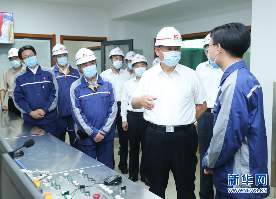 8月18日至21日,中共中央总书记、国家主席、中央军委主席习近平在安徽省考察。这是19日上午,习近平在马鞍山市中国宝武马钢集团优质合金棒材车间考察,了解企业复工复产和经营情况。 新华社记者 王晔 摄