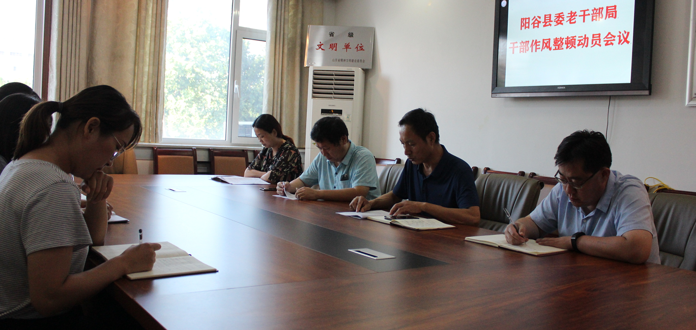8月18日,聊城阳谷县委老干部局组织局机关全体党员干部职工,召开干部作风整顿动员会议,传达学习全县干部作风整顿动员大会暨群众工作会议精神。县委组织部副部长、老干部局局长张绍峰主持会议并讲话,并就下一步全面整顿干部思想工作作风,进一步推进全县老干部工作高质量转型发展作出安排部署。