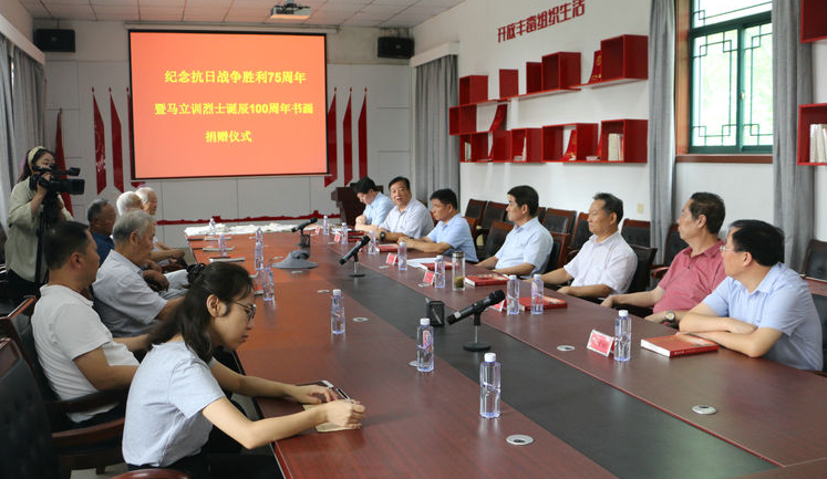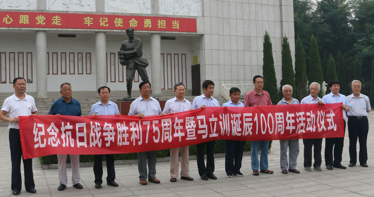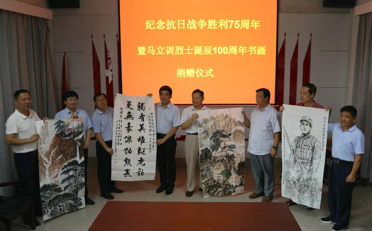 8月19日,在抗战胜利75周年、全国“双百”人物马立训诞辰100周年来临之际,中共淄博市委老干部局、市老年书画学会、市老干部书画研究会与淄川区联合在马立训故乡——淄川区革命历史纪念馆举办了“纪念抗日战争胜利75周年暨马立训诞辰100周年活动”。市委老干部局正县级干部徐文勇,市老年书画学会、市老干部书画研究会会长王呈祥,淄川区人大原副主任、区老年书画学会理事长李金孝等同志参加了活动。