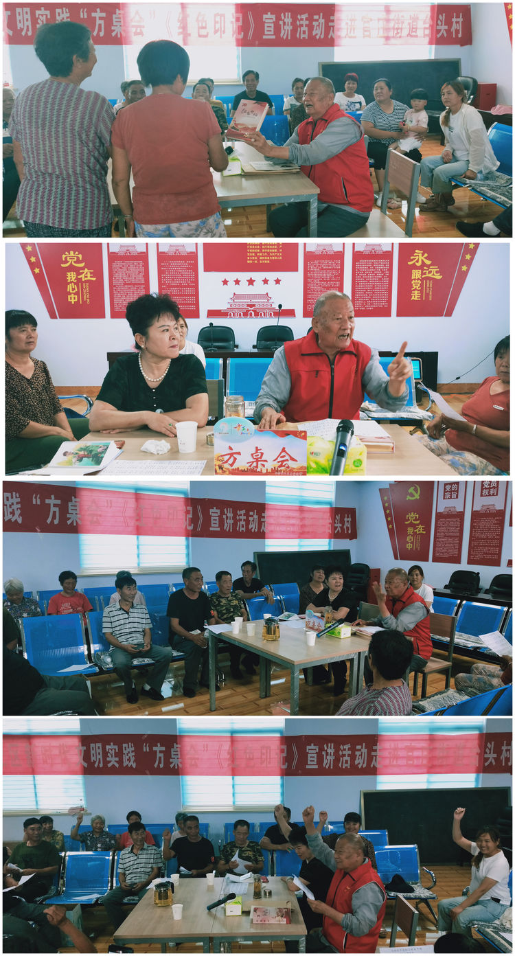 章丘官庄街道办事处有着悠久的红色历史,不仅建有章丘烈士陵园,还是章丘第一届抗日民主政府的诞生地。郭际奎结合官庄街道办事处拥有的红色革命历史的实际,重点讲述了《红色印记》一书中,在建国前参加革命工作的官庄老党员刘士平、梁振水等人的红色故事。