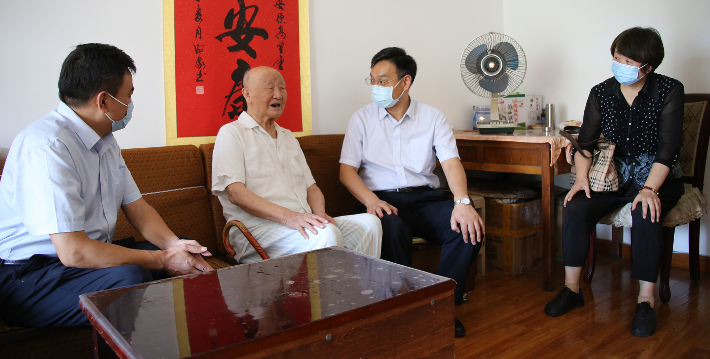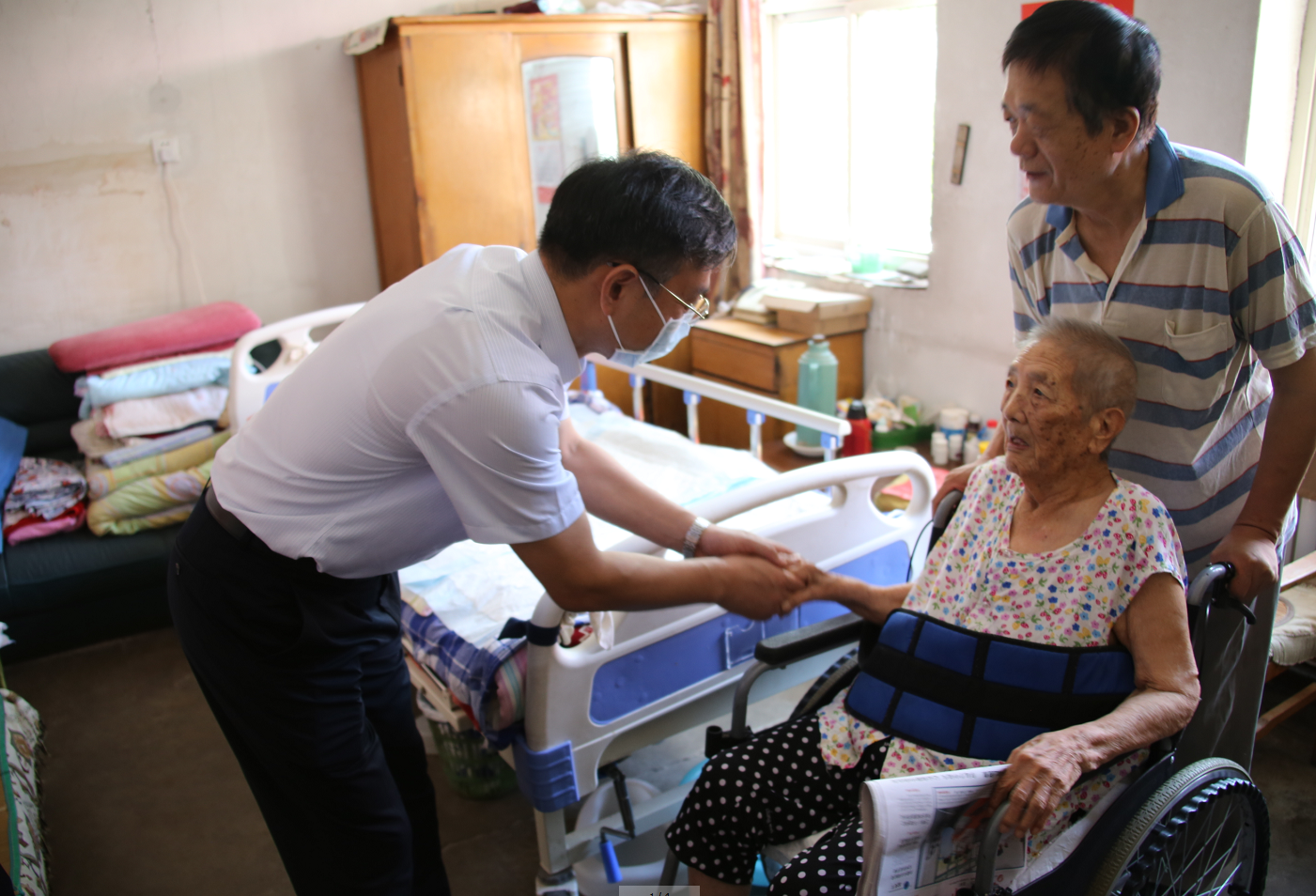 在张旭光家,侯新文和他亲切交谈,询问张老的身体状况和家庭状况,为老人在98岁高龄仍有这么健朗的身体点赞并祝福老人健康长寿。侯新文说,你们为抗日战争胜利、新中国成立和地矿事业发展作出了重要贡献,是党和国家的功臣,党和人民永远不会忘记。张旭光激动地说:“能有现在这么好的生活,都是共产党给的,要感谢党、感谢组织的关怀”。在王佩苗家,侯新文仔细询问王老的病情和生活状况,鼓励她增强战胜疾病的信心,叮嘱其家人照顾好老人的生活起居,让老人幸福的安度晚年。