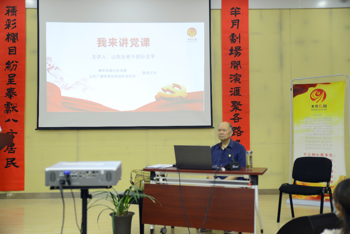 8月28日上午,山东广播电视台离退休党总支在济南市青年东路社区小礼堂举办了一场主题为“悟初心讲党性,做永远在路上的战士”的生动党课,为青年东路社区“我来讲党课”活动送来第一讲。山东广播电视台退休干部孙玉平担任党课主讲人,山东广播电视台离退休党总支和青年东路社区党员代表共40余人参加了此次活动。