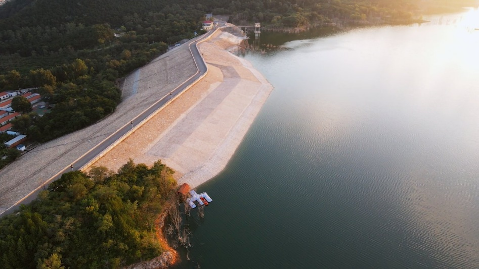8月20日拍摄的密云水库副坝(无人机拍摄)(记者夏子麟摄)
