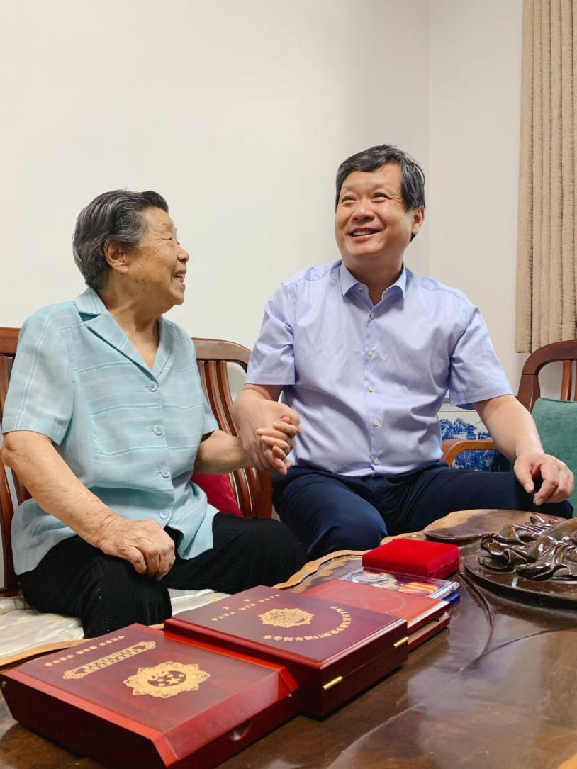 9月3日上午,山东广播电视台党委书记、台长吕芃,台党委副书记张卫华,代表全台干部职工,走访慰问1941年参加革命工作的离休干部辛同英老前辈,共同庆贺抗战胜利75周年,祝贺辛老98岁生日快乐。