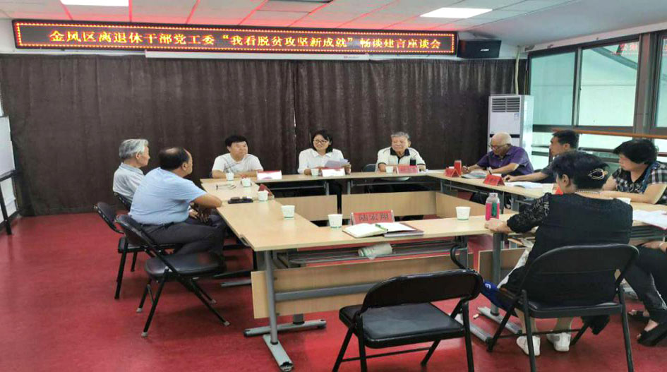 金凤区老干部局。8月13日,金凤区老干部局召开离退休干部“我看脱贫攻坚新成就”座谈会。会上,向离退休干部介绍了金凤区“十三五”移民搬迁、精准扶贫、产业结构调整、土地流转、产业带动、农民增收等政策、措施,金凤区在脱贫攻坚方面取得的重大成果。离退休干部们紧扣主题进行了交流发言。退休干部肖幸福说:“近年来,通过眼看耳闻、亲身感受,感到农村一年一个变化,贫困地区基础设施和公共服务得到很大的改善,脱贫攻坚战略犹如一夜春风,给我们带来了万千气象。”退休干部陆全喜说:“我们在脱贫攻坚领域取得了前所未有的成就,彰显了中国共产党领导和我国社会主义制度的政治优势,这些成绩的取得,凝聚了全党全国各族人民智慧和心血,是广大干部群众扎扎实实干出来的。”