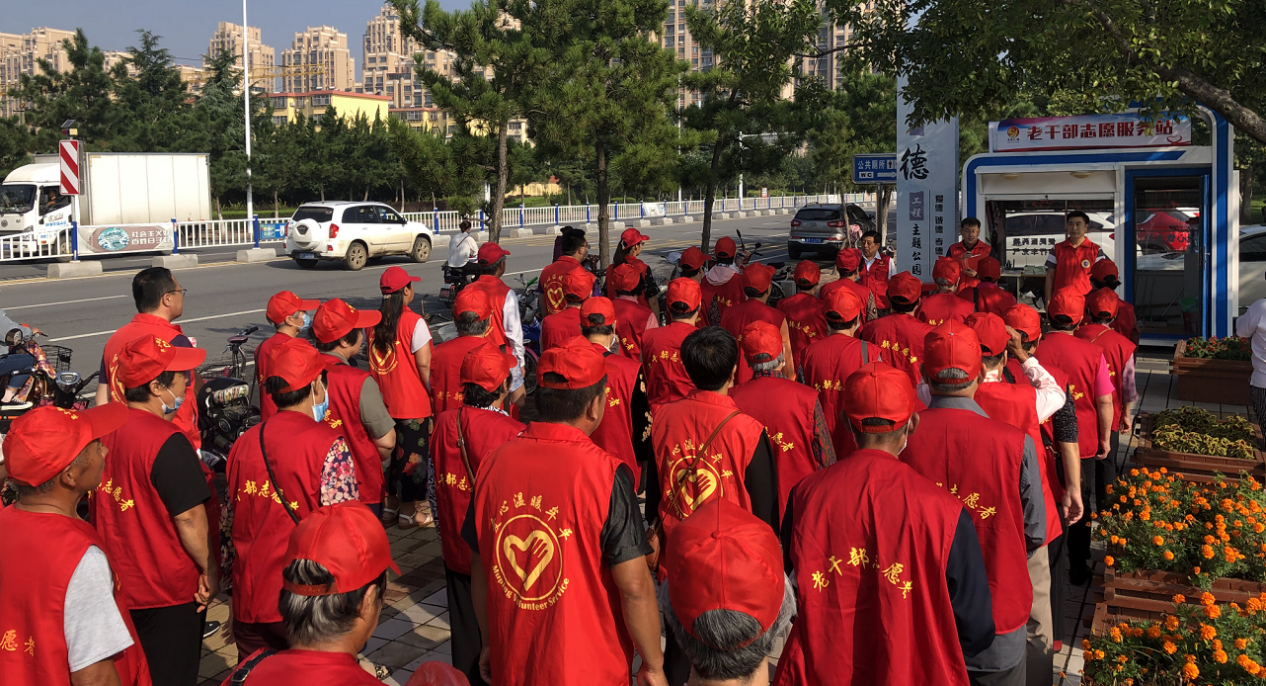 9月16日,烟台市牟平区老干部志愿服务站在沁水河公园正式启动,牟平区老干部爱心家园志愿服务队队员、区委老干部局青年志愿者共50多人参加启动仪式。