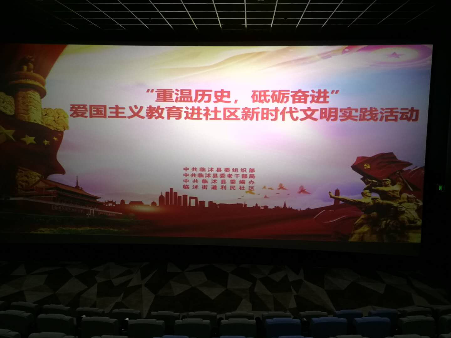 近日,临沂临沭县委老干部局联合县委组织部、县编办、利民社区开展“重温历史 砥砺奋进”爱国主义教育进社区活动,组织党员观看红色电影《八佰》。