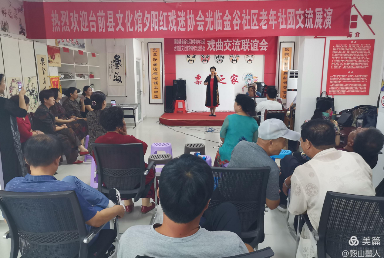 9月9日,阳谷县老年社团博济桥街道金谷社区戏曲协会举办戏曲交流联谊会,邀请台前县文化馆夕阳红戏迷协会许志义馆长率团一行10余人前来阳谷县博济桥街道金谷社区戏曲协会参加戏曲交流活动。戏曲交流会上,两县票友轮番登场献唱,纷纷展开戏曲才艺演示,有的演唱经典京剧选段《沙家浜》,有的演唱豫剧选段《刘大哥讲话理太偏》,有的则演唱山东梆子,联谊会上此起彼伏,掌声不断,都在为精彩的演出喝彩加油,现场气氛高涨热烈。