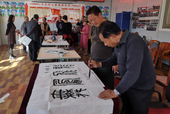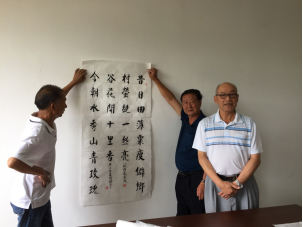 老年大学应八街街道党工委邀请先后组织部分学员分3批到高桥、相连等村委会开展“我看脱贫攻坚新成就”诗书画摄影采风活动。观摩当地玫瑰产业发展,了解乡村振兴试点建设情况。每到一处,学员们都现场挥毫泼墨,现场展示并捐赠自己的作品。“我们希望能够和村民交流沟通,通过书法展示新农村建设风貌和安宁的文化魅力。同时,进一步推动传统文化和书法艺术的完美结合,促进社会主义新农村的和谐发展。”书法班班长李庭贵说。