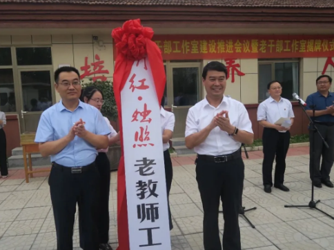 县委常委、组织部部长潘锡才同志和县教体局局长孟凡政同志为“沂红·烛照”老教师工作室揭牌。随后,潘锡才同志为“金色夕阳”老干部工作室、“京彩人生”吴玉昌工作室、“翰墨书香”老干部工作室、“健康先锋”老干部工作室、胡德峰工作室、国土卫士老干部工作室授牌。