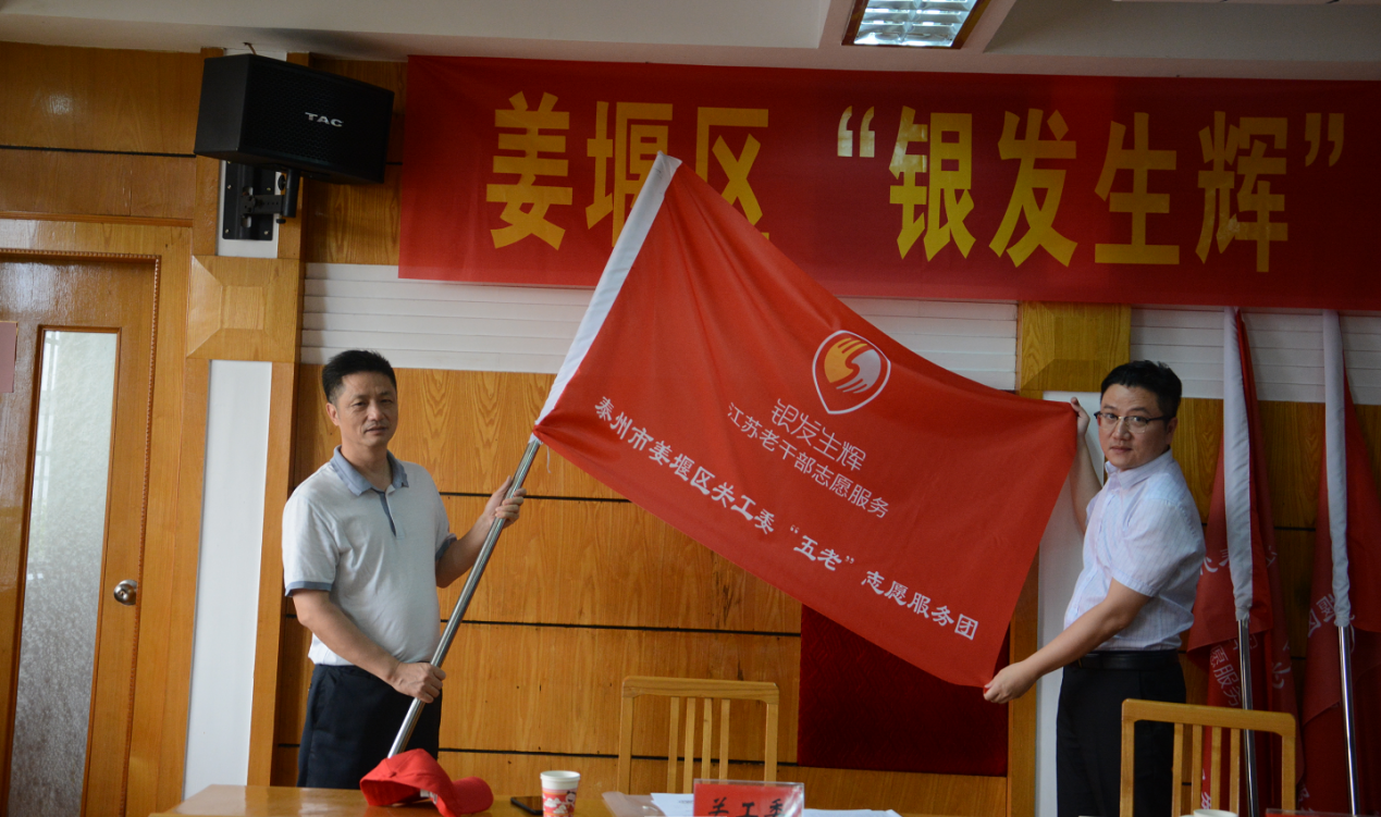 首先,区委离退休干部工委专职副书记沈明强传达了省、市关于“银发生辉”工程的相关文件精神,并就下一步工作进行部署。随后,区文明办副主任谷洋为关工委、老龄协会、老促会、老科协、老年健康协会、老年体协、老年书画联谊会、老干部艺术团和老干部“流动党校”9支志愿服务队授旗。9支志愿服务队的组建标志着姜堰区“银发生辉”工程走上规范化的轨道,新一轮推进工作正式拉开序幕。谷洋对志愿服务队的成立表示祝贺。他说,老同志是党和国家的宝贵财富,具有思想认识高、专业素质强等优势。他希望老同志们能在服务对象方面破圈,在服务场所和内涵上破壁,充分发挥优势和专长,在理论宣讲、关心下一代、科技助困等方面展现老干部无私大爱、为民情怀和历久弥坚的信仰与信心。