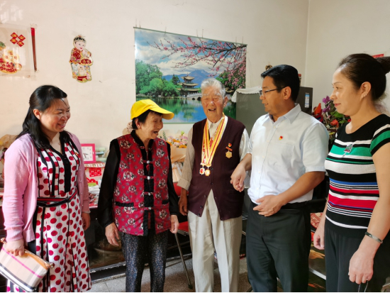 今年是中国人民抗日战争暨反法西斯战争胜利75周年。为牢记党的革命历史,传承红色精神,近日,云南宜良县委书记李绍俊走访慰问抗日战争期间参加革命工作的离休干部王耀亭同志,向老同志致以崇高敬意并送上组织的关怀。