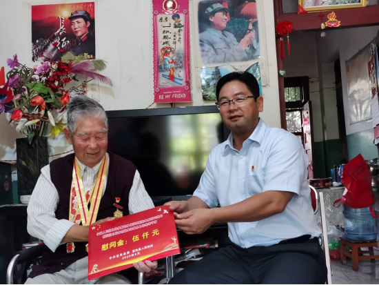 李书记与王老同志促膝交谈,详细了解老干部的身体状况、家庭情况和生活情况,并送上鲜花和慰问金,感谢他为民族、为国家所做的一切。王老同志回忆了抗战时期参加革命的烽火岁月,回顾了我们的国家所取得的可喜成绩,盛赞党取得的举世瞩目的成就,对国家的发展充满信心,对党和政府的关心表示由衷感谢,祝福祖国繁荣昌盛、国泰民安。