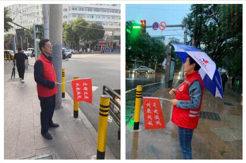 在城关区焦家湾东社区的二热十字路口和东升饭店丁字路口,身着红色马甲的志愿者们,不停挥动着手中的“文明交通从我做起”警示旗,耐心制止违反交通规则的行人和非机动车辆,认真执行着交通劝导工作。