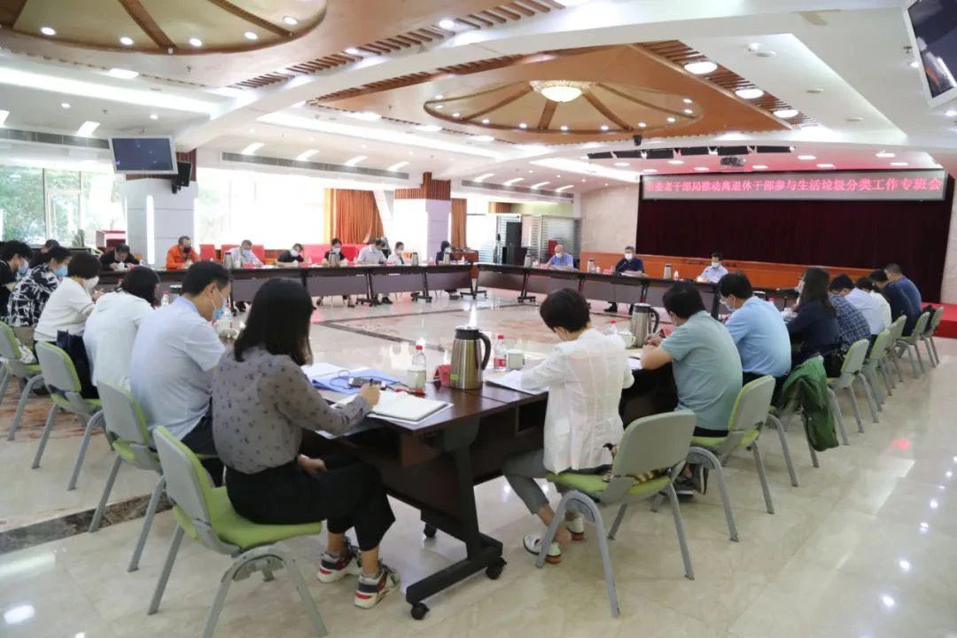 近日,北京市委老干部局召开推动离退休干部参与生活垃圾分类工作专班会,深入学习贯彻习近平生态文明思想、习近平总书记关于垃圾分类工作的重要批示指示精神和市委要求,研究分析组织老同志参与生活垃圾分类工作情况,交流经验做法,对进一步做好推动工作进行再动员、再部署。市委老干部局有关领导出席会议并讲话。各区委老干部局、市属7个系统老干部工作部门有关负责同志参加会议。
