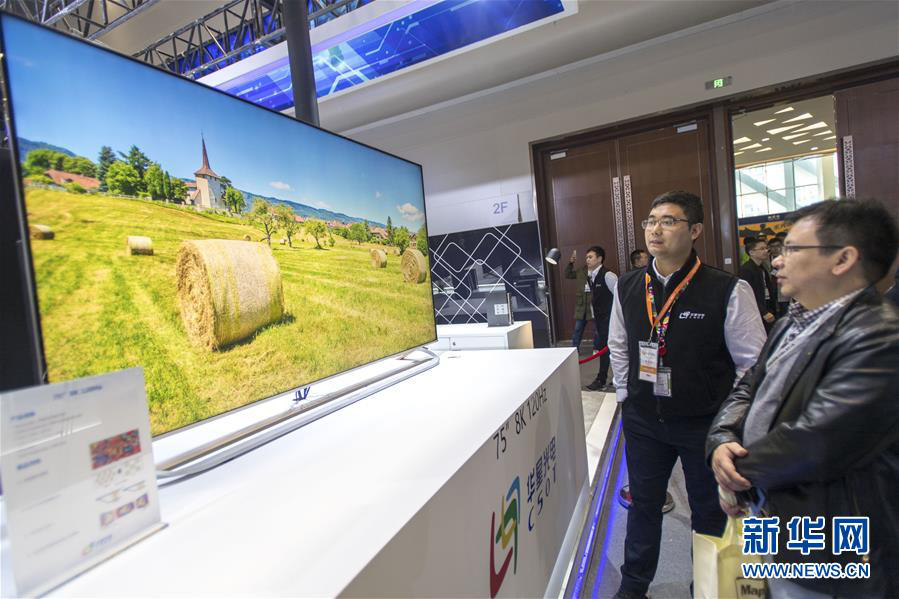 在武汉东湖新技术开发区举办的第十五届“中国光谷”国际光电子博览会上,观众在华星光电展区参观“8K”显示屏(2018年11月14日摄)。 新华社记者 熊琦 摄