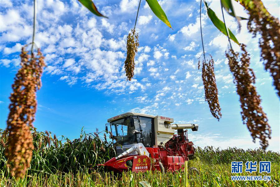 山西省万荣县万泉乡东丁村村民在收割高粱(9月17日摄)。 新华社记者 曹阳 摄