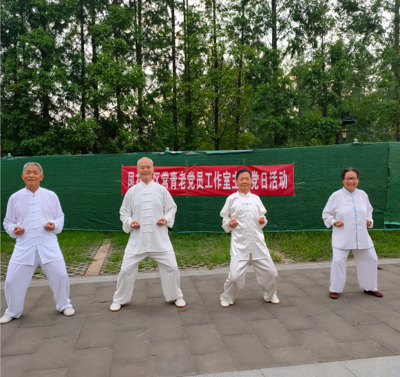 2015年6月,陈道琪与几个爱好运动的邻居成立了“金凤凰太极队”。每日,陈道琪都会带领大家在凤凰湖练习太极。有这位多才多艺的“老邻居”牵头,小区里的不少群众都加入了太极队。这个队伍不简单,里面涵盖了文艺队带头人、智囊团成员、居民小组长等,5年来,陈道琪带领金凤凰太极队参加了街道、社区各种比赛,获得了不少奖项。老党员工作室成立以后,太极队新增了一项活动内容,休息的时候开展“每日议”活动,陈道琪会给大家摆一摆近期学习到的新政策、了解到的新变化,队员们也一起聊小区治理、提意见建议。今年以来,太极队已为社区党委收集环境整治、文明丧葬、车辆乱停乱放等民情民意30余条,有力助推了社区的治理工作。