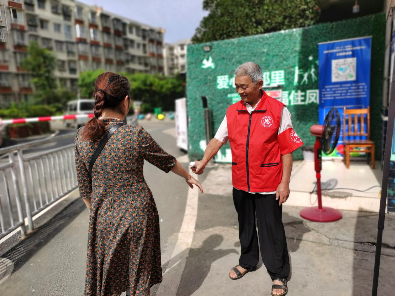 疫情期间,陈道琪带领工作室的老党员志愿者,身穿红马甲,佩戴红袖标,化身移动的“小喇叭”,为居民宣传方针政策,劝导在小区聚集、不佩戴口罩的老年人。“你们一把老骨头了,一天到处跑,不累啊!”周嬢嬢说道。“没问题,能为社区出点力,高兴还来不及。”琪爷爷笑呵呵地回答,巡逻完了小区,他又在大门口,为出入小区的居民测量体温、宣传政策,这就是陈道琪,一个名副其实的移动热心“小喇叭”。