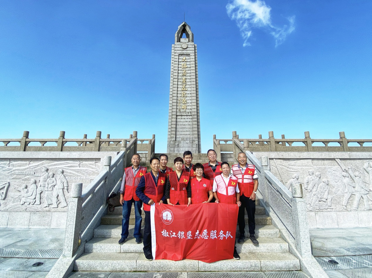 离退休干部党支部书记代表和老干部志愿者代表登上大陈岛,在垦荒纪念碑前重温入党誓词,发出志愿服务新倡议;重走垦荒之路,再续志愿服务新征程。
