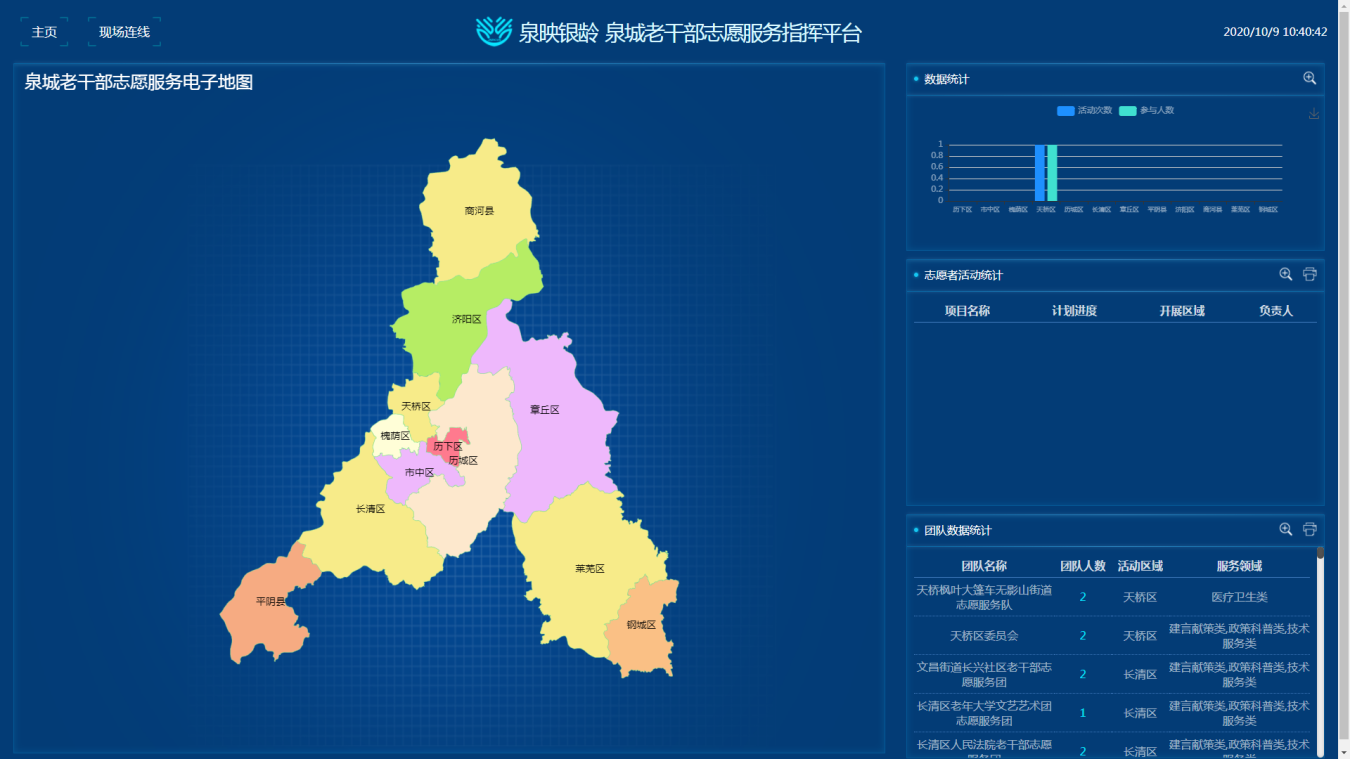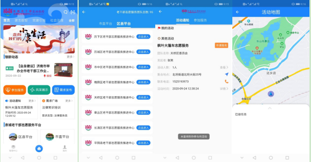 打造老干部志愿服务信息化平台——“泉映银龄APP”,解决好供求信息不对称、组织引导力不强的问题。研发老干部志愿服务工作APP,以“智慧云”模式为老干部志愿服务工作提供重要软件支撑。一是实现了信息交互功能,在“志愿服务组织、志愿者”和“服务需求方”之间架起桥梁,强化信息交流和互动。二是实现了组织孵化功能,通过加强组织和志愿者管理,确保志愿服务组织发展的正确方向和规范化建设。三是实现了工作指挥功能,与实体阵地“智慧大屏”相关联,提供数据管理、数据分析和远程指挥等服务,为领导决策、活动策划提供数据支持,确保了志愿服务工作紧紧围绕全市中心同频共振。四是实现了统筹联动功能,各级推进中心(站)可以在规定权限内对本地本级老干部志愿服务工作进行线上管理,展示自身工作特色,进行横向和纵向的交流互动。