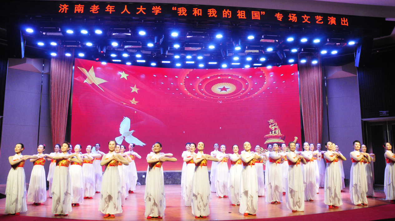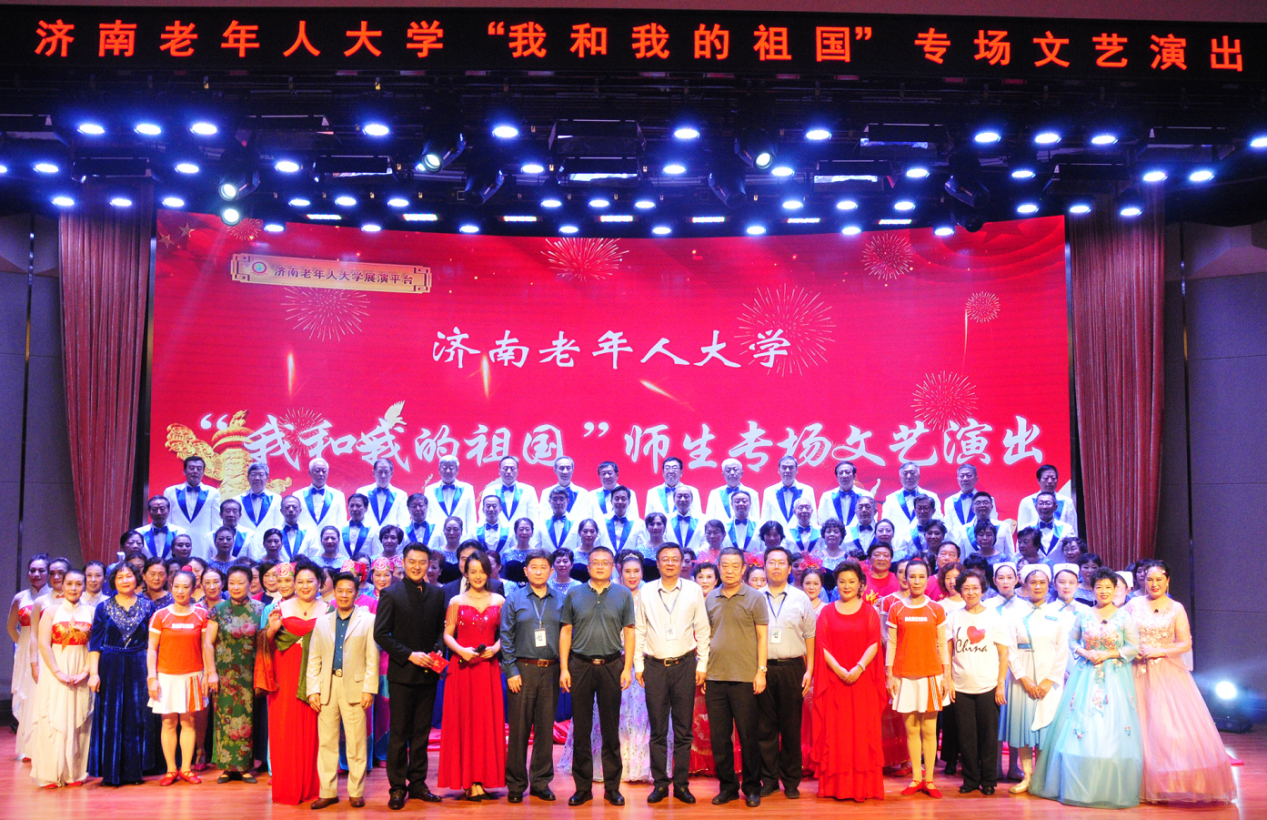 为营造庆祝中华人民共和国成立71周年浓厚氛围,充分展示济南老年人大学师生的艺术风采和教学成果,近日,济南老年人大学在舜元大厦教学楼一楼大礼堂成功举办“我和我的祖国”师生专场文艺演出。市委老干部局副局长、济南老年人大学校长温洪军,市委老干部局副局长李智、山东老年大学学员管理处处长杨壮及学校领导班子成员出席演出,各分校、部分区县老年大学校长以及老年学员、教师代表共计200余人参加活动。