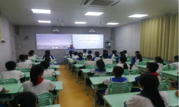 近日,青岛西海岸新区关工委法治教育工作团团长赵法治,到东岳路小学作了一场题为“扣好人生第一粒扣子”的法治教育报告。报告的形式采用503班在录播课堂上课,全校其它各班级同步收看现场直播课堂,1700多名师生收看了现场直播。