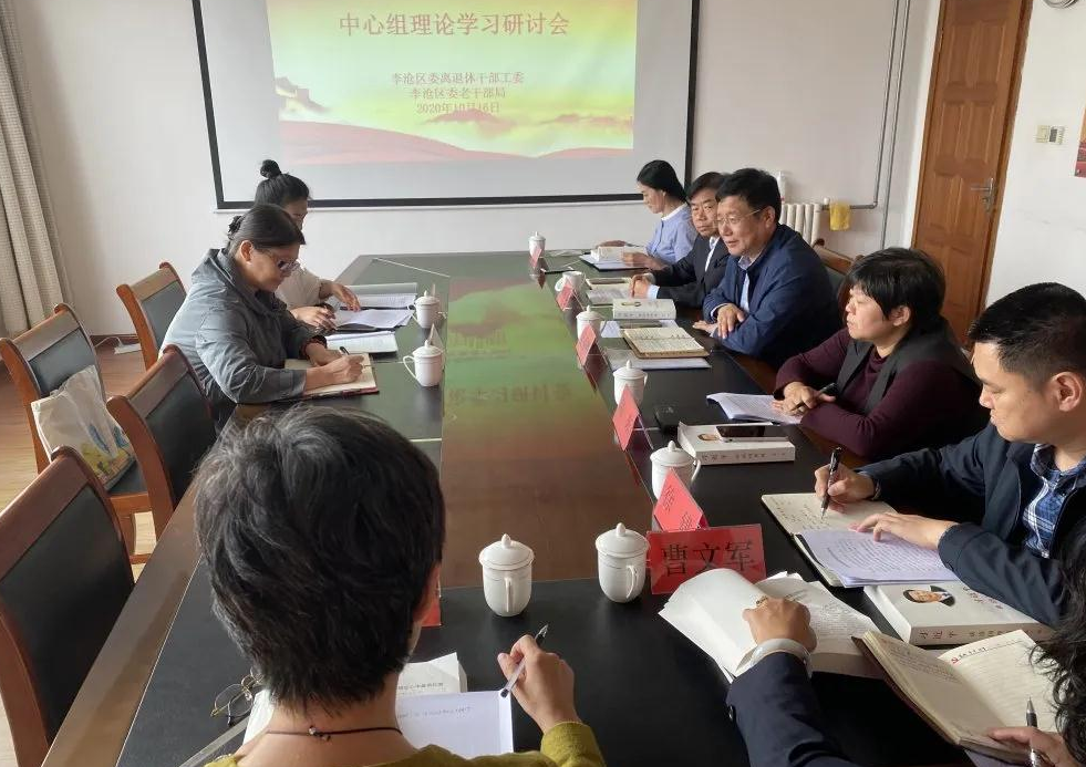 近日,青岛李沧区委离退休干部工委组织开展了10月份理论学习中心组学习研讨,区委宣传部副部长孙文洁、富冰冰主任巡听指导。工委理论学习中心组成员参加学习活动,组织部副部长、老干部局局长、离退休干部工委书记姜福明主持学习。