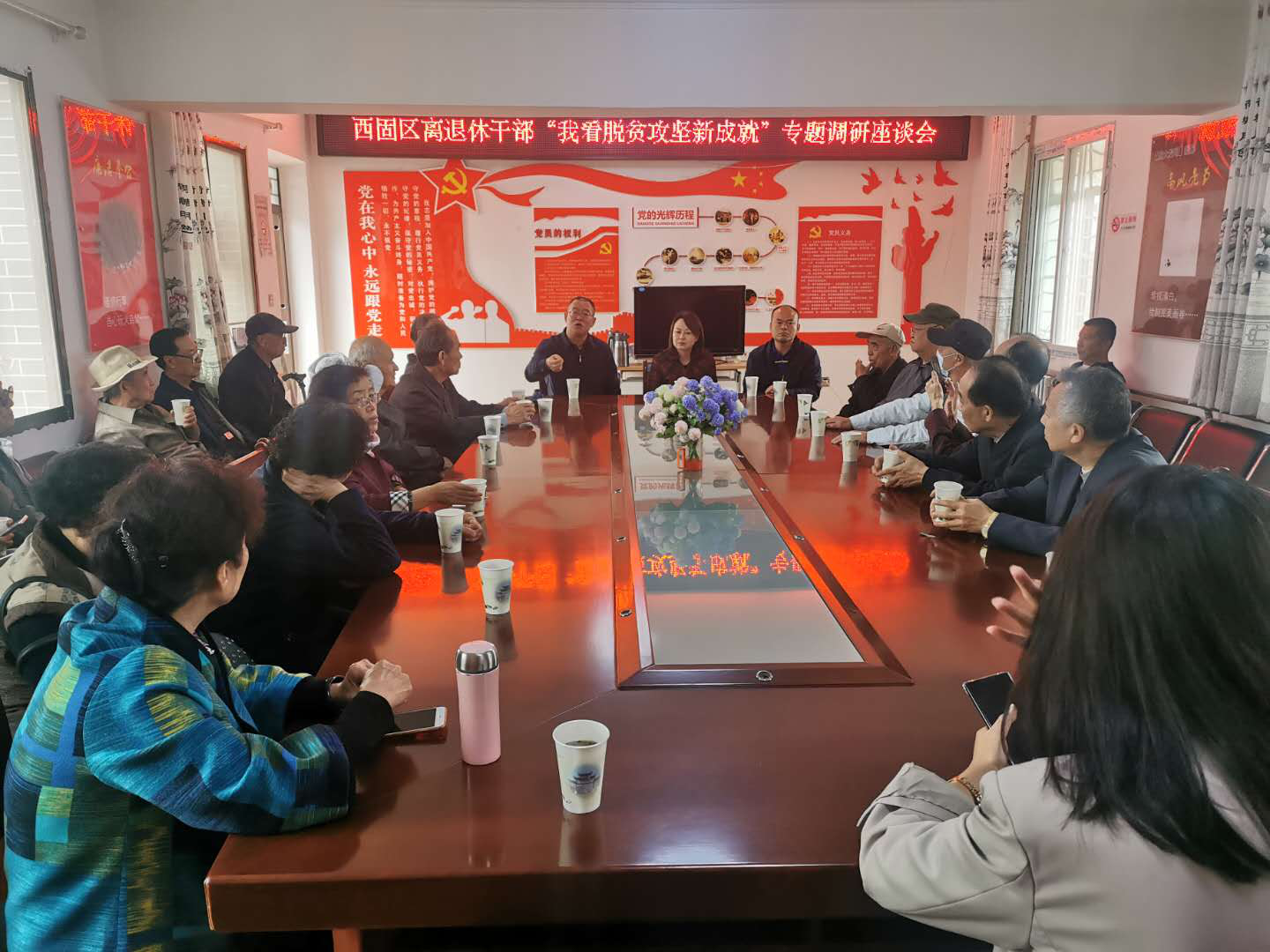 在随后召开的全区离退休干部“我看脱贫攻坚新成就”专题调研座谈会上,老干部们结合专题调研和自己的亲身工作经历、退休后的所见所闻,回顾畅谈了十九大以来,我区经济发展所取得的巨大成就,脱贫攻坚和乡村振兴给农民生活、农村面貌、农业产业带来的新变化,忆往昔、看今朝、话发展、谈感受。“美丽乡村如诗如画,文化生活精彩纷呈,乡村治理和谐有效,幸福指数节节攀升”。这是退休干部金育德对如今西固新农村生活的概括,也是西固区抓党建强基础、抓发展惠民生、抓治理破难题的真实写照。老干部们为全区乡村振兴点赞,他们谈到,村民的钱袋子鼓起来了,走上了富裕康庄大道,这充分说明各级领导干部和村民们抓机遇、补短板,在基础设施、村容村貌、乡村旅游和旅游富民等领域取得了有效突破,探索出了发展乡村旅游的新模式。幸福不会从天而降,好日子是干出来的,为美丽乡村加油鼓劲。老干部们都纷纷表示,今后将一如既往关心西固、支持西固,继续发挥老干部的独特优势和积极作用,始终保持离岗不离党、退休不褪色,为西固区助推乡村振兴、决战脱贫攻坚、决胜全面小康发挥余热、建言献策,增添正能量。