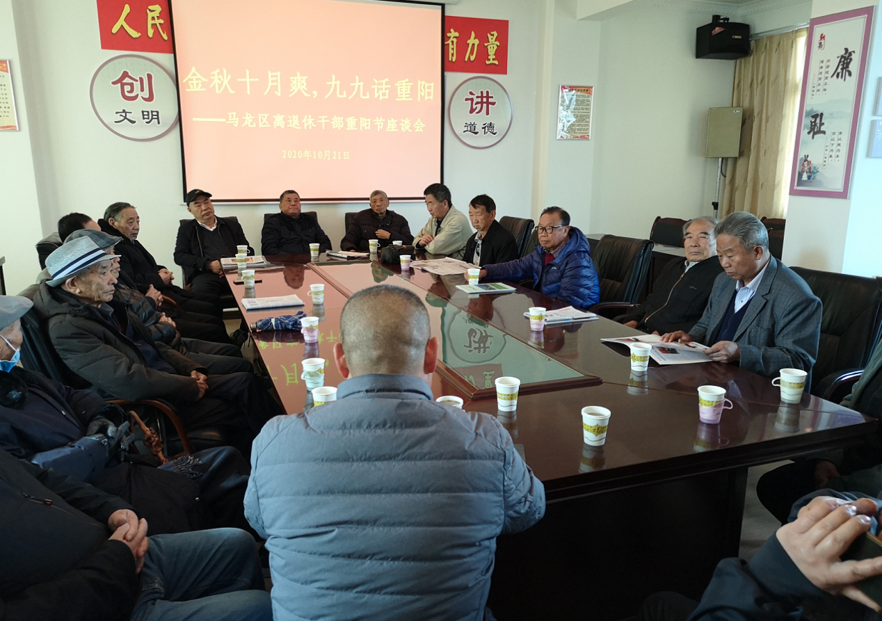用心倾听老干部们的心声与愿望,马龙适时组织召开座谈会。马龙的社会事业是在一辈辈老干部打下的坚实基础上乘势而上、奋勇前进。在重阳节来临之际,为了及时回应老干部们对马龙经济社会发展的关心,区委组织部组织召开了“金秋十月爽,九九话重阳”专题座谈会,为老干部们致以节日的问候和诚挚的祝福。并就马龙区一年来经济社会各项事业发展取得的成绩进行了简要回顾,对未来的发展规划做详实解说。悉心听取他们对马龙经济社会发展的意见和建议,及时解答他们关心关注的事项。同时希望老干部们一如既往地关心马龙发展,为马龙发展建设贡献“银发”力量。