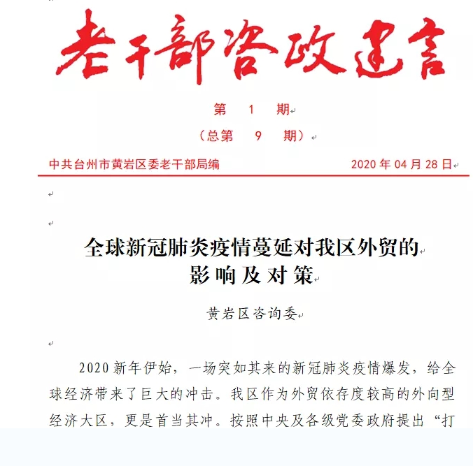 通过“组团式服务”引导老干部为企业发展献计献策、助智助跑。针对国外疫情的扩散,区咨询委老干部们专题开展外贸影响度调研,精准把握国外疫情对外贸企业影响,为区委区政府决策提供参考。