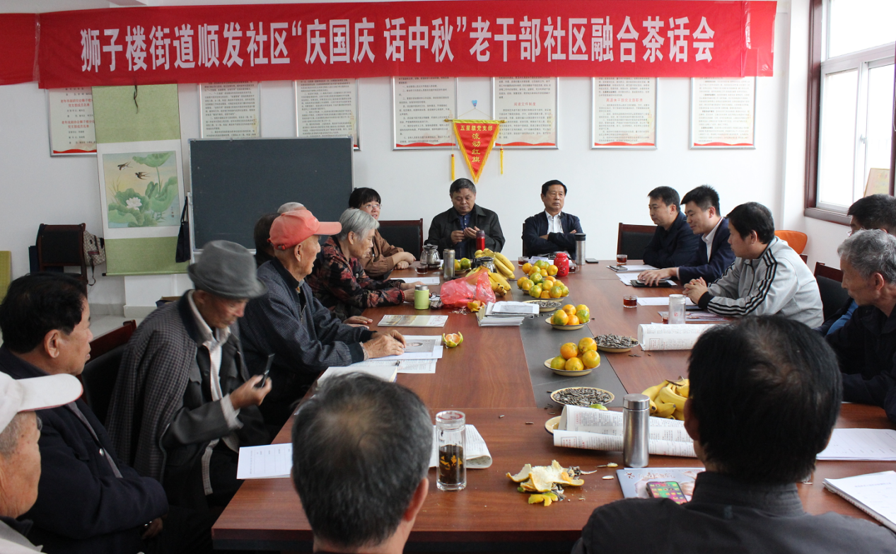 二是进行座谈交流。近日,在阳谷县狮子楼街道顺发社区老干部工作示范点举办了“庆国庆 话中秋” 老干部社区融合茶话会。街道党工委领导向老干部通报了街道经济社会发展情况,希望老干部充分发挥经验和智慧,积极献计献策,参与街道社区治理。老同志畅所欲言,纷纷表示根据个人爱好及特长认领志愿服务项目,发挥自身余热,助力社区发展。县委老干部局出席领导希望老干部秉承“关系在单位、活动在社区、奉献在社会”理念,积极开展书画交流、戏曲义演、法制宣讲等特色活动,为“本色家园·银龄先锋”离退休干部党建品牌增光添彩。
