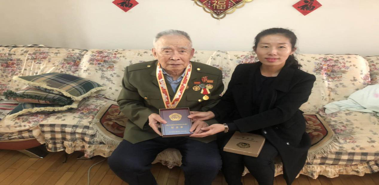 “当年在朝鲜战场上,无粮无衣无炮弹,当时的艰难是无法用语言来形容的……”老战士王贵范的一席话,让慰问组的同志们仿佛回到了那场战火硝烟岁月。在为老同志佩戴纪念章时,老同志主动要求穿上军装之后再佩戴。当老同志穿上军装的那一刻,胸前的军功章闪闪发亮,无不验证了他光辉的战斗生涯。