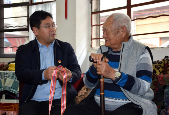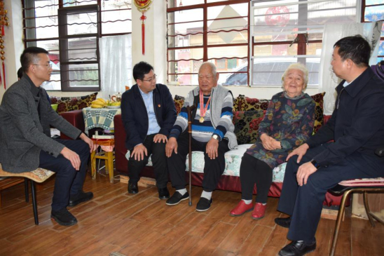 今年是抗美援朝70周年,为进一步宣传和弘扬革命功臣的丰功伟绩,弘扬伟大的抗美精神,加强爱国主义教育,增强中国特色社会主义伟大事业凝聚力和感召力。近日,云南宜良县委书记李绍俊带队,“四班子”主要领导分成7个慰问组,对全县22名抗美援朝出国作战人民志愿军老战士进行走访慰问,将中共中央、国务院、中央军委颁发发“中国人民志愿军抗美援朝出国作战70周年”纪念章送到老战士手中,并致以崇高的敬意和亲切的问候。