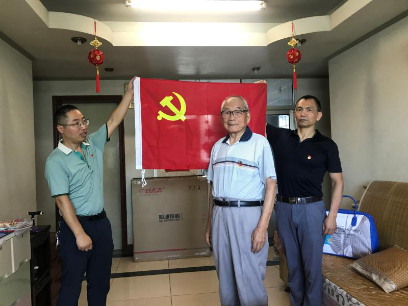 五是主题党日融入关爱特殊群体。针对处于“后双高期”的离休干部党员群体,通州区将开展“畅谈奔小康、助推双胜利”主题党日活动地点搬进离休干部家中,为老同志们佩戴党徽,送上政治学习资料,与离休干部党员一起面向党旗重温入党誓词,与党旗合影,感受新时代新变化,畅谈我国疫情防控和建党99周年感言,引导老同志“离休不离党”。事改企离休干部陈达在家中参加完主题党日活动后高兴地表示,“我是一名老党员了,虽然年事已高,腿脚不方便,但组织让我在党内政治生活上没有‘掉队’,‘主题党日进家门’活动让我感到很温暖也很感动。”五接镇老干部党总支书记丰振华在主题党日当天代表老干部党总支领取“五接镇党内关爱基金”,用于慰问生活困难及模范老党员,用实际行动关心老年特殊群体,全力保障在共奔小康的路上一个都不掉队。