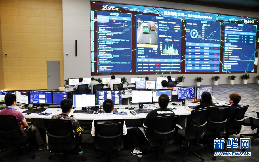 工作人员在上海市浦东新区城市运行管理中心内工作(2019年8月31日摄)。新华社记者 方喆 摄