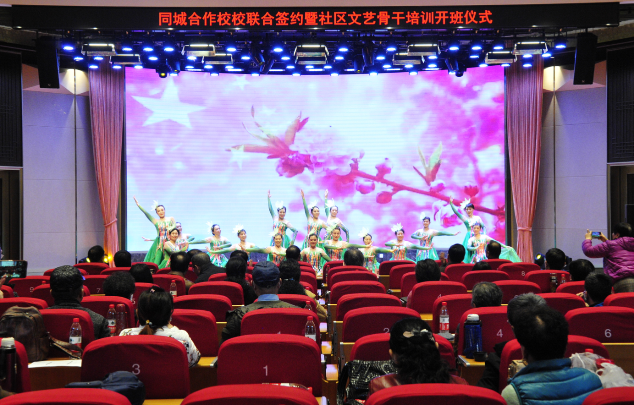 整场仪式在学校器乐系老年学员古筝演奏《高山流水》中拉开帷幕,市委老干部局副局长、济南老年人大学校长温洪军,山东艺术学院现代音乐学院院长刘晓鹏,济南大学美术与设计学院副院长杨海波,济南大学音乐学院副院长王建成,济南幼儿师范高等专科学校副校长丁家德分别致辞,与会领导上台签约并见证仪式。随后,与会领导和在场观众共同欣赏了舞蹈系老年学员的时装表演《童年的一幅画》。在社区文艺骨干培训开班仪式上,历下区千佛山街道龙艳代表社区文艺骨干发言,山东老年大学副校长傅立民讲话,济南市委组织部副部长、老干部局局长苏本宽讲话,整场仪式在高新分校舞蹈系老年学员的《初心》中结束。