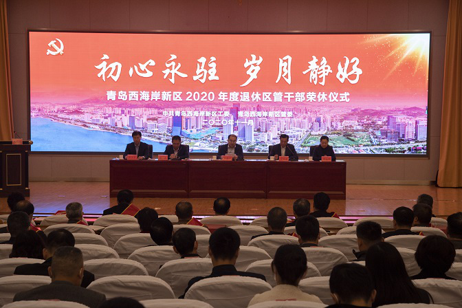 11月19日上午,青岛西海岸新区举行2020年度全区退休区管干部荣休仪式。出席荣休仪式的有:工委区委常委、工委组织部部长杜乐江同志,区委离休退休干部工作领导小组部分成员单位主要领导同志;参加荣休仪式的有:2020年度全区退休区管干部代表,各镇、街道和区直各单位老干部工作分管领导和科室负责人。荣休仪式由工委组织部副部长、老干部局局长、区离退休干部党工委书记管池省同志主持。