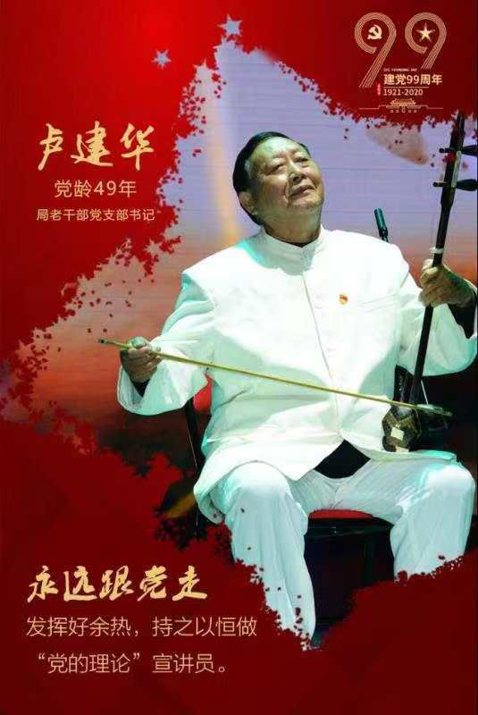 为弘扬社会主义核心价值观,让习近平新时代中国特色社会主义思想和党的路线方针政策宣传更接地气,2018年,卢建华把喜爱文艺的老党员、老教师、老干部、老军人、老模范、老艺人组织起来创办了四港艺术团,艺术团由民乐队、舞蹈队组成。卢建华不仅出力还出资,拿出退休工资的15%,作为艺术团活动经费,为艺术团添置了锣鼓、谱架、凳子等器材。卢建华说,党的十九大召开后,党员干部和群众广泛学习十九大精神,但是有些只是浮于表面,收效甚微。针对这种现状,他充分发挥老干部“余热”,提早开始策划,以群众广泛参与、喜闻乐见的活动为载体,通过多种表演形式,宣传习近平新时代中国特色社会主义思想,寓教于乐、润物无声。这个艺术团在卢建华的组织下,立足新时代新思想和乡村振兴主题,编排了舞蹈《没有共产党就没有新中国》、民乐合奏《日子越过越惬意》、说唱《为时代楷模点赞》、锣鼓说唱《赌博害处多》、小戏《母恩重于山》……在市、区、镇、村文艺演出上频频亮相。艺术团成立两年来,通过进村组、进企业、赴敬老院演出20余场,深受村民喜欢。四港村村干部周志祥说:“我们村一支小队伍走上了大舞台”。今年面对新冠疫情,卢建华带领艺术团的老同志们坚持戴着口罩创作和排练节目,并将朗诵《抗击疫情齐努力》、快板《众志成诚抗疫情》通过微信群进行广泛宣传,有力地鼓舞了当地群众投入抗击疫情的决心和信心。