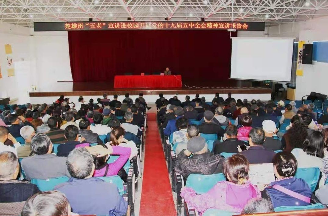 “未来5到15年,中国将怎样发展、如何实现发展?这是党的十九届五中全会所要回答的主要命题……”11月26日下午,云南楚雄州委老干部党校报告厅内,州“五老”宣讲团成员、州委老干部党校特聘教师、州委党校退休干部、原调研员李志昌正在宣讲党的十九届五中全会精神,标志着楚雄州“五老”宣讲团党的十九届五中全会精神专题宣讲全面启动。