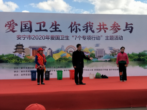 为进一步广泛宣传爱国卫生运动相关知识,引导全市广大人民群众积极参与和践行七个专项行动,养成健康文明的生活习惯, 11月24日至12月25日,云南安宁市开展以“爱国卫生·你我共参与”为主题的文艺宣传巡演活动。活动将陆续在9个街道和部分社区上演,预计演出17场次。通过群众喜闻乐见的舞蹈、小品、情景剧等文艺演出方式向市民演绎、传播爱国卫生“7个专项行动”的知识。