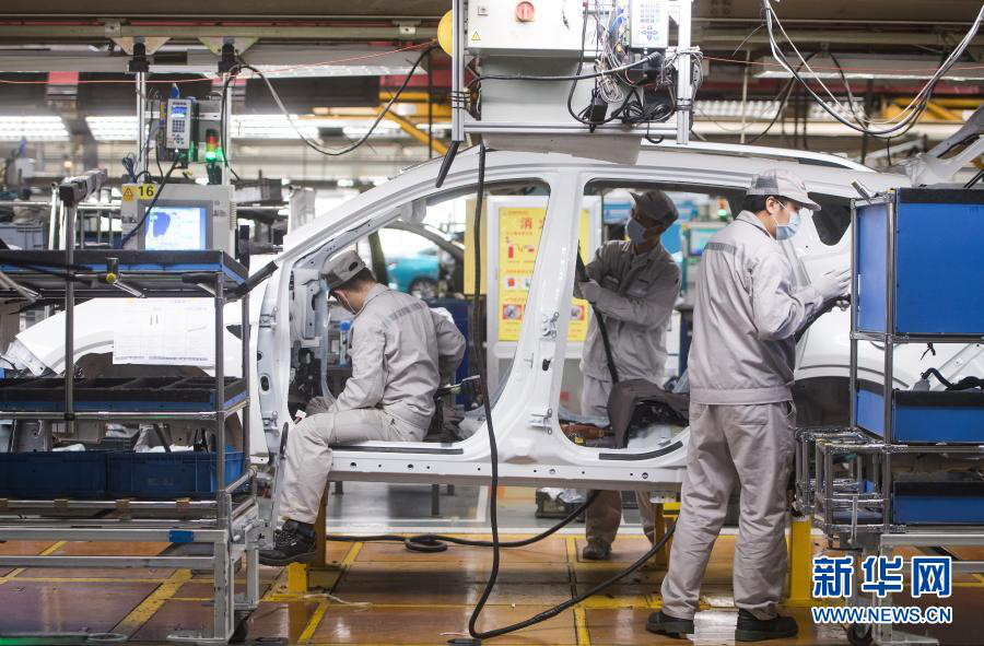 3月24日,工人在湖北武汉东风乘用车公司工厂总装车间的流水线上作业。3月下旬左右,武汉各企业开始陆续复工复产。新华社记者 肖艺九 摄
