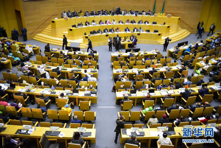这是2月9日在埃塞俄比亚首都亚的斯亚贝巴拍摄的非盟首脑会议现场。新华社发(迈克尔摄)