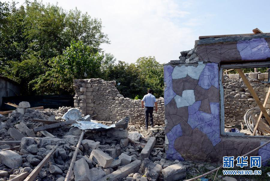 这是9月29日在阿塞拜疆临近纳卡边境的塔塔尔地区拍摄的在冲突中受损的房屋。新华社发(巴巴耶夫摄)