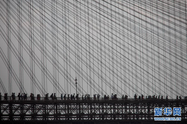 6月6日,抗议警察暴力执法导致乔治·弗洛伊德死亡的示威人群走过美国纽约布鲁克林大桥。新华社发(郭克摄)